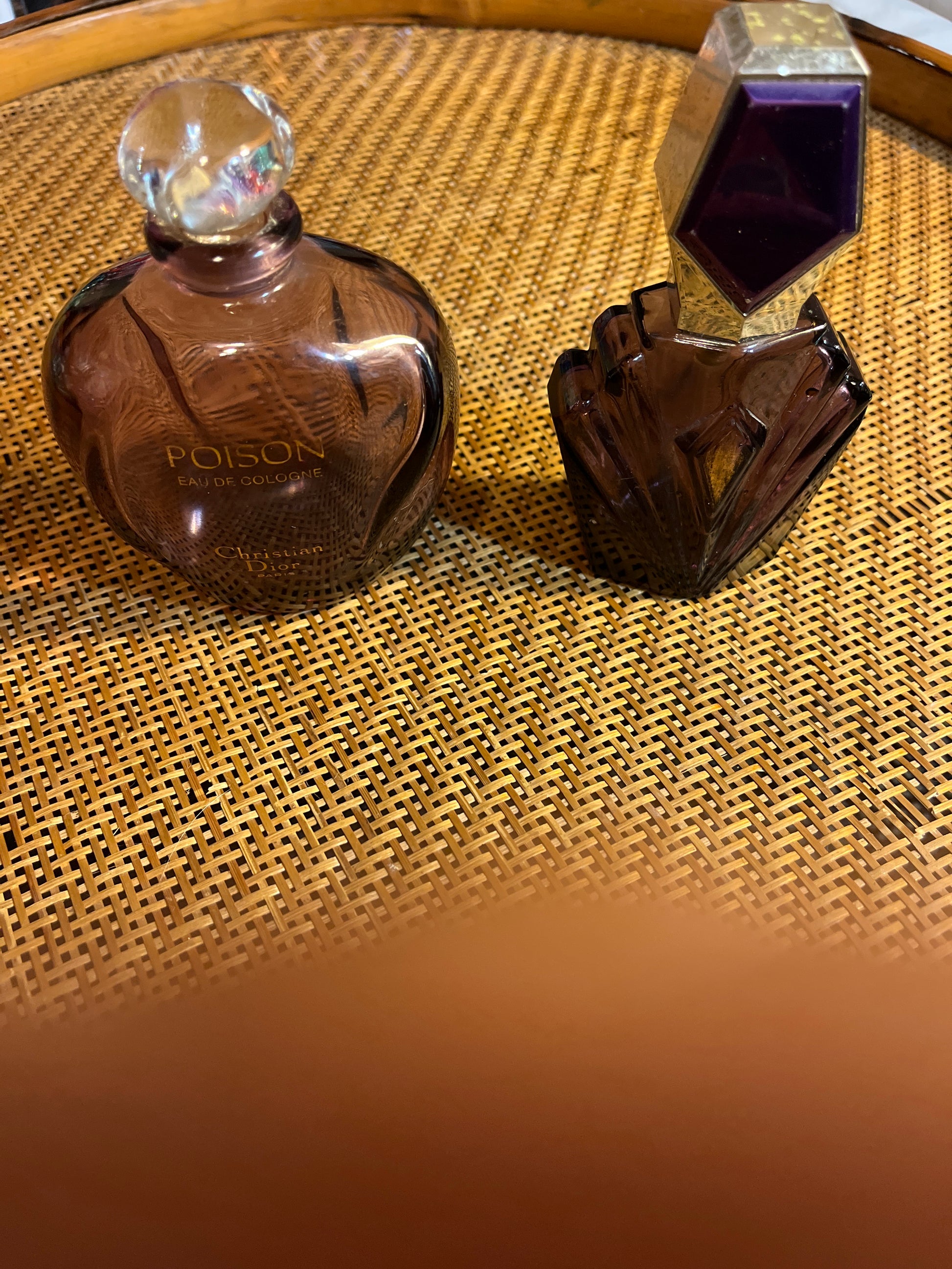Two vintage very collectible perfume bottles! One on left is Christian Dior “Poison”and the one on right is Elizabeth Taylors “Passion” Price is for both!