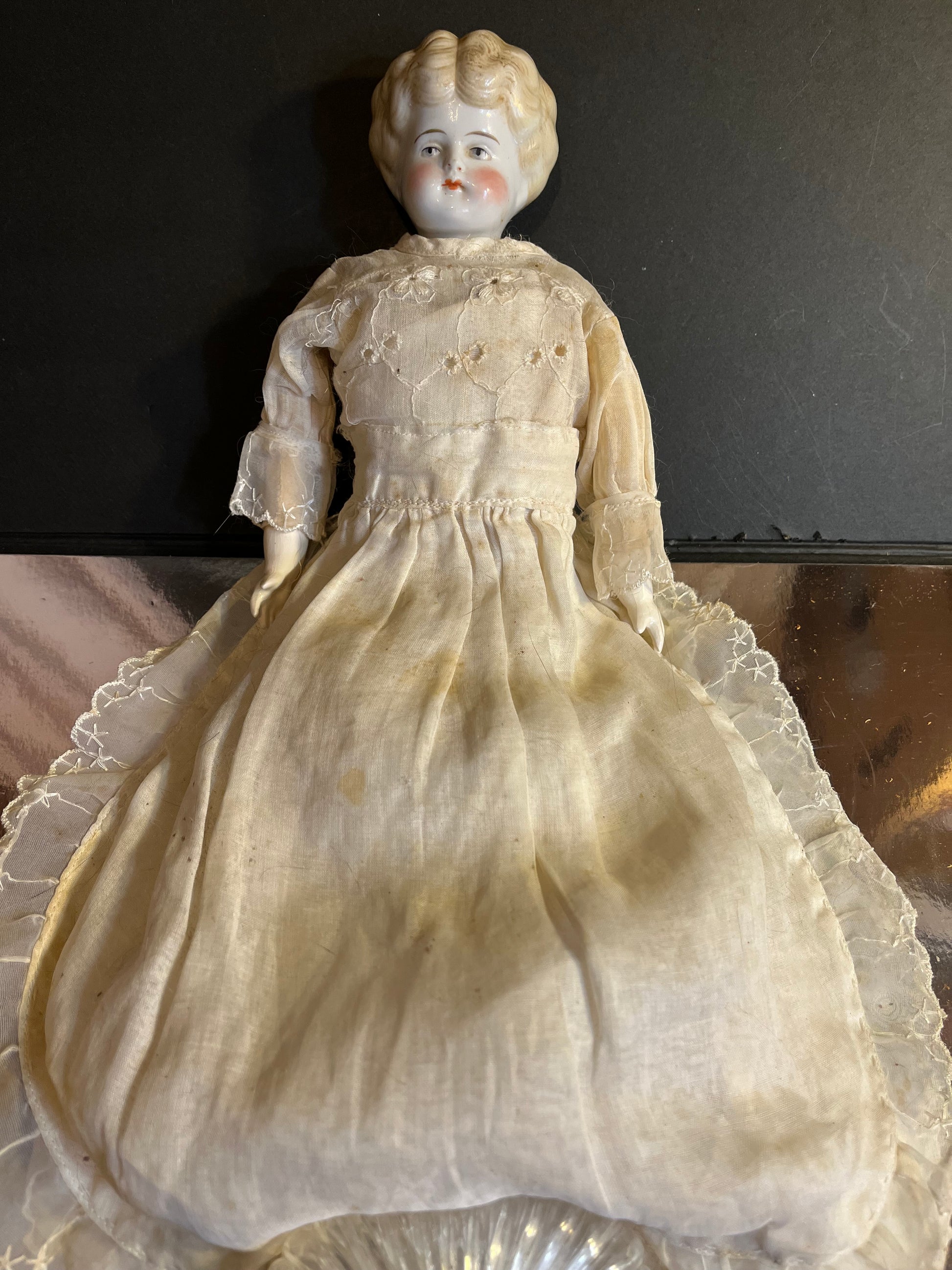 This is an antique porcelain doll from the nineteenth century! I believe she is German! Cannot find like images which means she might be rare!